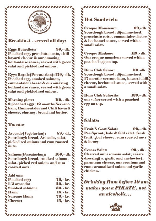 Rum Club Copenhagen's menu is crafted with passion, emphasizing their unique offerings. Begin your experience with a cup of their famous espresso, which has garnered praise from patrons as the quintessential Italian-style coffee. For those in the mood for a cozy, indulgent drink, try the Irish Coffee or the Caribbean Coffee, both priced at DKK 89. These spirited brews are perfect companions for a chilly Danish day. Don’t forget to explore their hot and boozy selections, including the house-special Gløgg, a delightful fusion of spices and warmth.